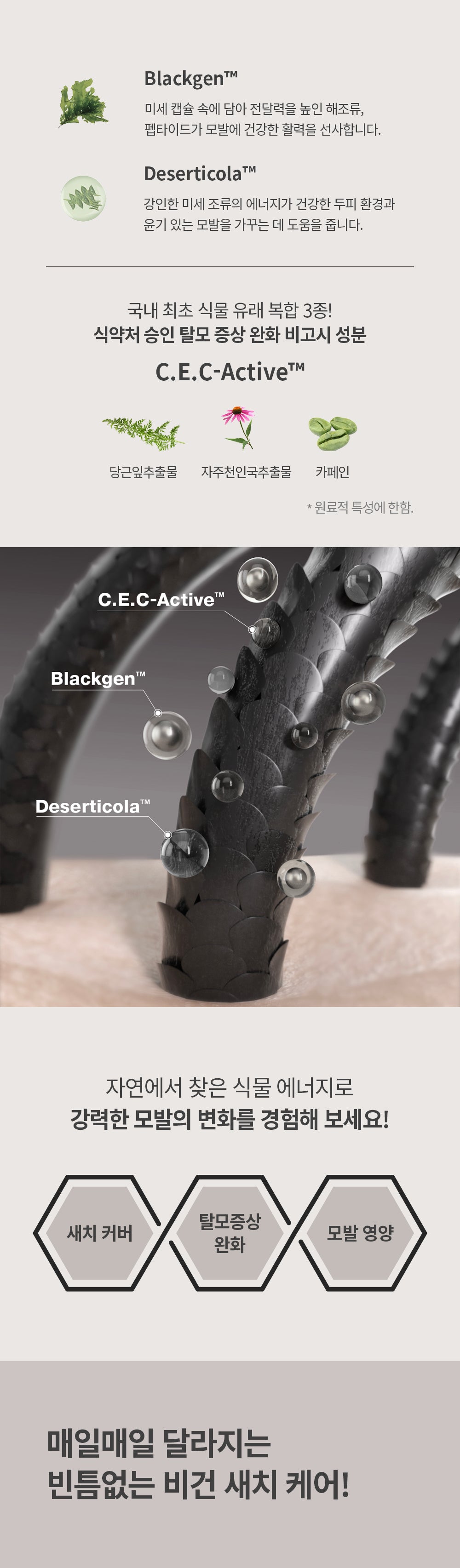 - Tảo biển và peptide chứa trong các viên nang siêu nhỏ với khả năng phân phối tốt hơn mang lại cho mái tóc sức sống khỏe mạnh.