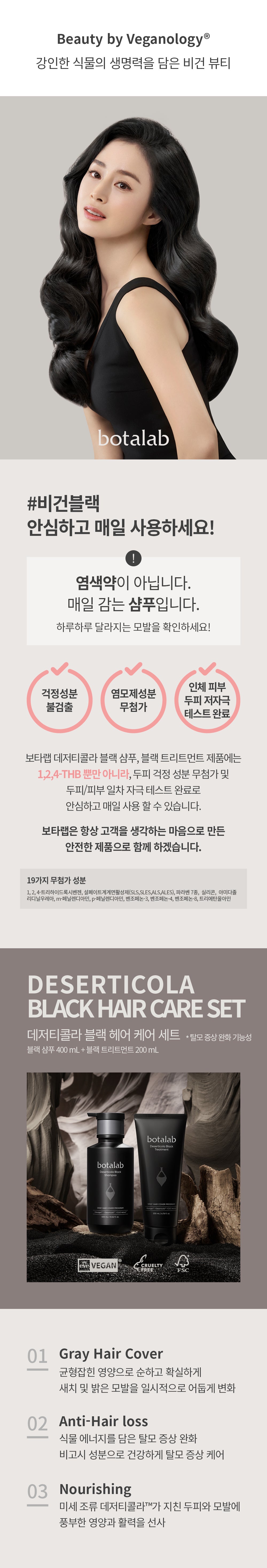 Botalab Deserticola Black Hair Care Set - Đây là loại dầu gội và kem ủ tóc đen giúp làm sẫm màu tạm thời tóc bạc và tóc sáng màu, giúp tóc khỏe mạnh và bóng mượt.