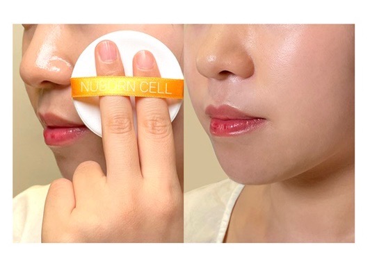 Lấy một lượng thích hợp Blanc Dubu Nuborn Cell Oil Cut Oil Paper Water Cool Sun Cushion bằng cách sử dụng bông phấn tích hợp.