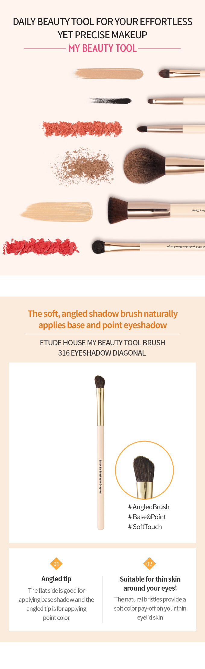 Cọ Chéo Tán Phấn Mắt Etude House My Beauty Tool Brush 316 Eyeshadow Diagonal 1ea 5.5g là cọ chéo dùng để tán màu base và nhấn màu mắt 1 cách chuẩn xác.