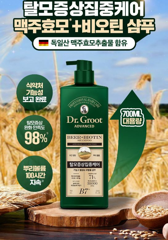 Dr.Groot Beer and Biotin Anti Hair Loss Shampoo là dầu gội chăm sóc chuyên sâu các triệu chứng rụng tóc bằng cách bổ sung dưỡng chất vào chân tóc men bia và biotin cao cấp của Đức để cung cấp dưỡng chất cho chân tóc và tóc.