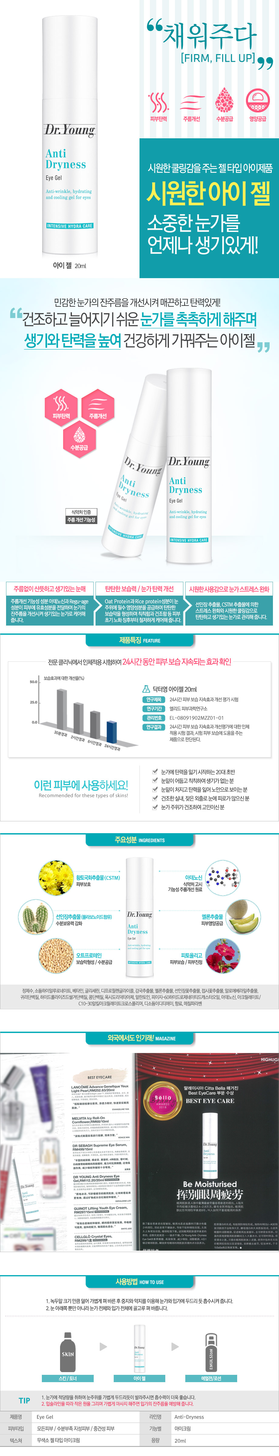 Gel Dưỡng Chống Nhăn Cấp Ẩm Làm Mát Vùng Da Quanh Mắt Anti Dryness Eye Gel 20ml chăm sóc vùng da quanh mắt 4 trong 1 với hiệu ứng làm lạnh và thành phần độc quyền Phyto-Oligo, hoạt chất Adenosine cùng Regu-Age và các thành phần thiên nhiên khác.