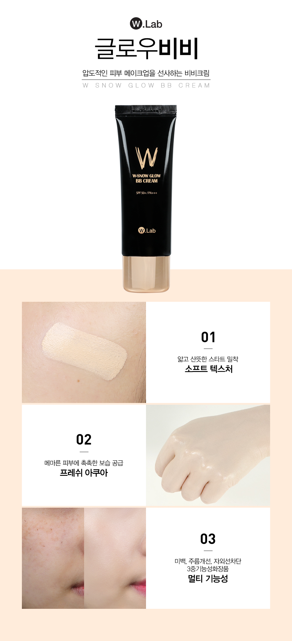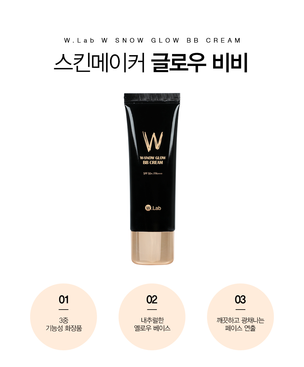 Kem BB Cream Trang Điểm Che Phủ Khuyết Điểm W.Lab W-Snow Glow BB Cream SPF50 + PA +++ 50g là kem BB cream trang điểm với độ che phủ tuyệt vời để làm mờ những khuyết điểm cho làn da ẩm mượt, không tì vết. Chiết xuất từ cây trà và chiết xuất Centella Asiatica làm dịu da.