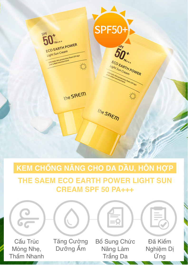 Eco Earth Power Light Sun Cream với chất kem mỏng mịn, thành phần lành tính sẽ dễ dàng thẩm thấu, vừa dưỡng ẩm vừa bảo vệ da trước ánh nắng mặt trời và các tia cực tím gây hại cho da