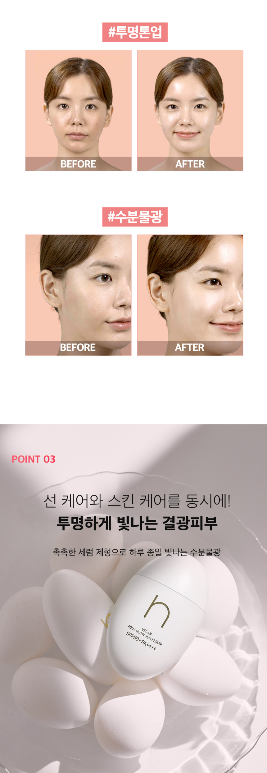 *Nếu lớp trang điểm không hiệu quả, hãy thử sử dụng Aqua Glow Sun Serum trước khi trang điểm. Công thức dưỡng ẩm nhanh chóng thẩm thấu vào da, mang lại tông màu trong suốt và tạo nên làn da sáng mịn như sương.