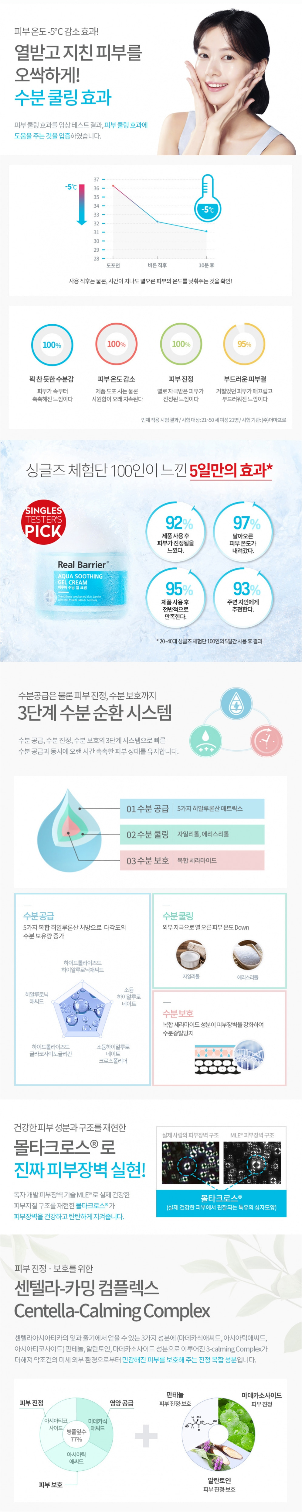 Kem Dưỡng Cấp Nước Làm Dịu Da Nhạy Cảm Real Barrier Aqua Soothing Gel Cream là kem dưỡng da tăng cường hàng rào bảo vệ da và giữ lại độ ẩm trên da trong thời gian lâu nhất và ngăn tiết dầu thừa trên da. Thành phần Centella Asiatica làm dịu và làm giảm các kích thích gây ra bởi sự ô nhiễm môi trường, Panthenol phục hồi da, Madecassoside để dưỡng ẩm và Allantoin để làm dịu.