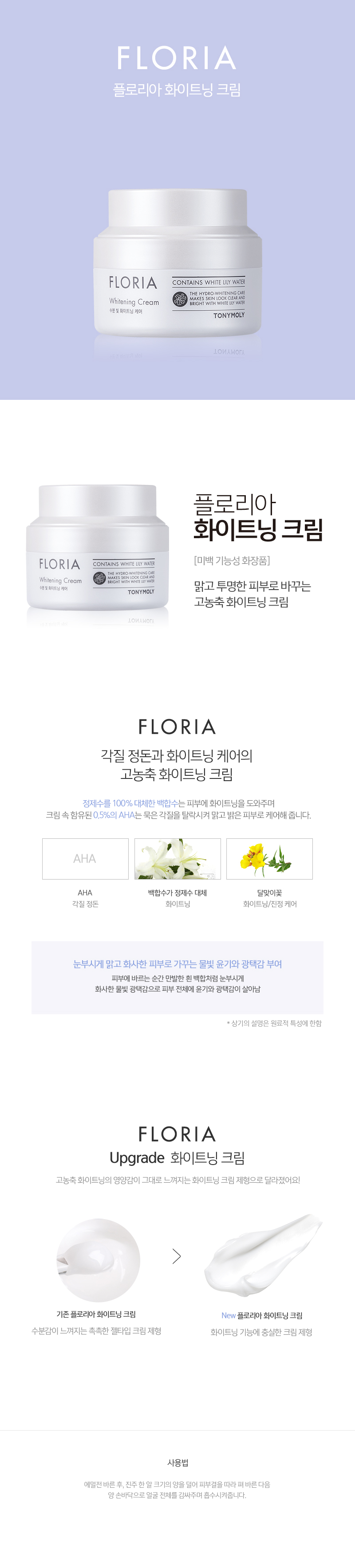 Kem Dưỡng Da Làm Trắng Trị Nám Tàn Nhang Tonymoly Floria Whitening Cream 60ml nằm trong dòng sản phẩm Floria Whitening của Tonymoly. Với chiết xuất 100% thành phần nước từ hoa Lily trắng, hoa hiên, Niacinamide 5% giúp cho da trắng sáng rõ rệt và cải thiện được tình trạng nám, sạm trên da, 0.5% AHA loại bỏ các tế bào da chết cứng đầu làm sáng da.