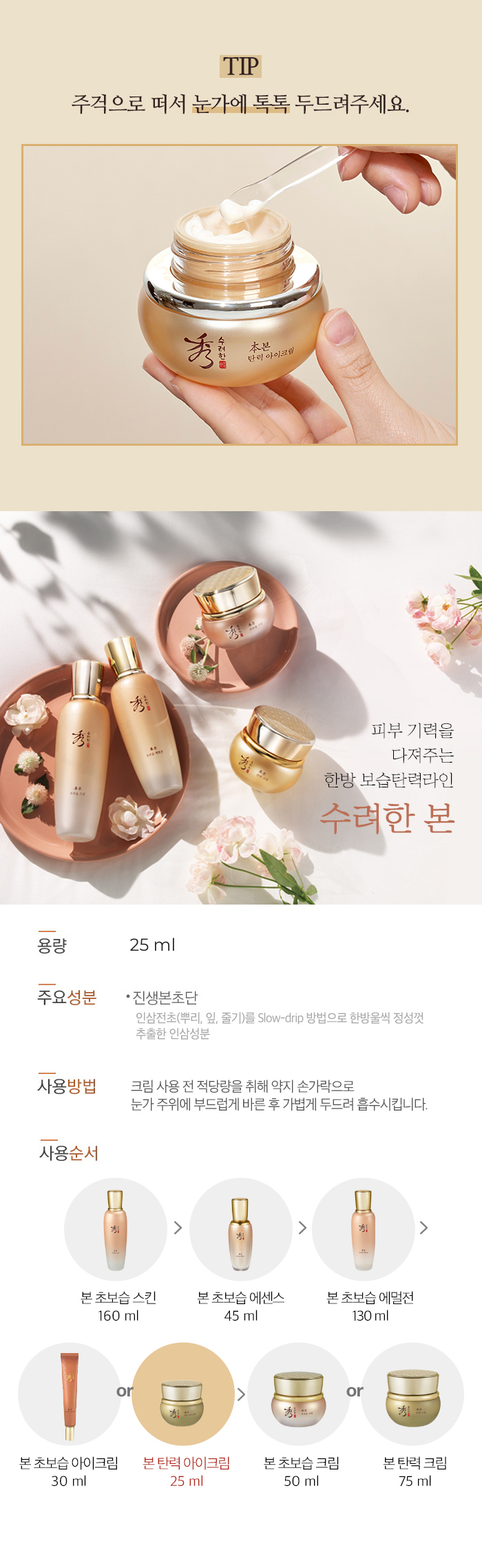 Trước khi sử dụng kem, lấy một lượng bằng hạt đậu xanh bằng thìa đi kèm, cẩn thận thoa lên vùng da quanh mắt bằng ngón đeo nhẫn, sau đó vỗ nhẹ để hấp thụ. Nó có hiệu quả khi áp dụng không chỉ cho vùng da quanh mắt mà còn cho vùng da quanh miệng, nơi có nhiều nếp nhăn.