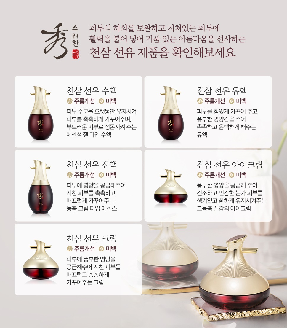Tác dụng huyền bí và kỳ diệu của Jangsaeng Hasuo và Jangsaeng Gilgyeong, những thành phần quý giá đã tồn tại qua nhiều thập kỷ trở lên, sẽ hồi sinh làn da đã trở nên mệt mỏi theo thời gian.