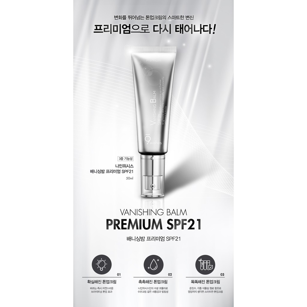 Kem Dưỡng Trắng Nâng Tông Da Và Se Khít Lỗ Chân Lông 9wishes Premium Tone up Vanishing Balm là sản phẩm kem dưỡng trắng nâng tông da, làm sáng da bên trong một cách tự nhiên và ngay lập tức. Vanishing Balm giành được biệt danh kem Gangnam trên một số kênh làm đẹp.