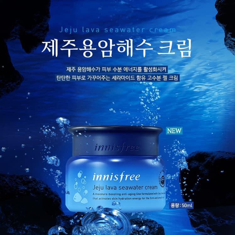 Kem Dưỡng Trẻ Hóa Da Innisfree Jeju Lava Seawater Cream 50ml là kem dưỡng dạng gel với độ ẩm cao chiết xuất từ nước biển dung nham Jeju giúp kích hoạt năng lượng dưỡng ẩm, mang lại làn da săn chắc.