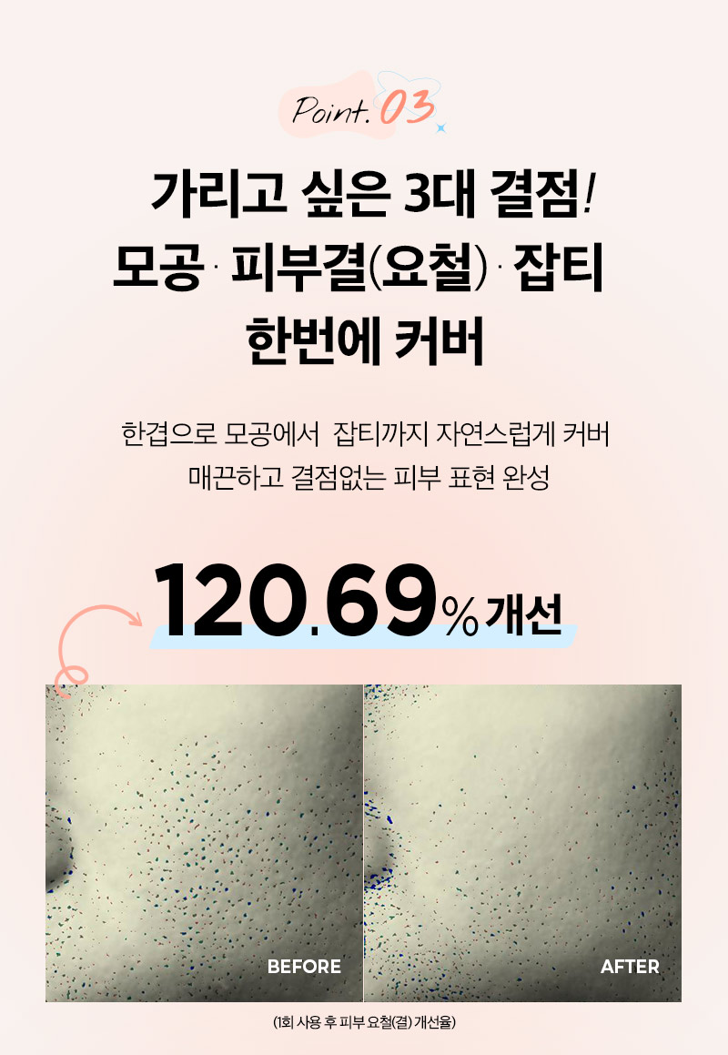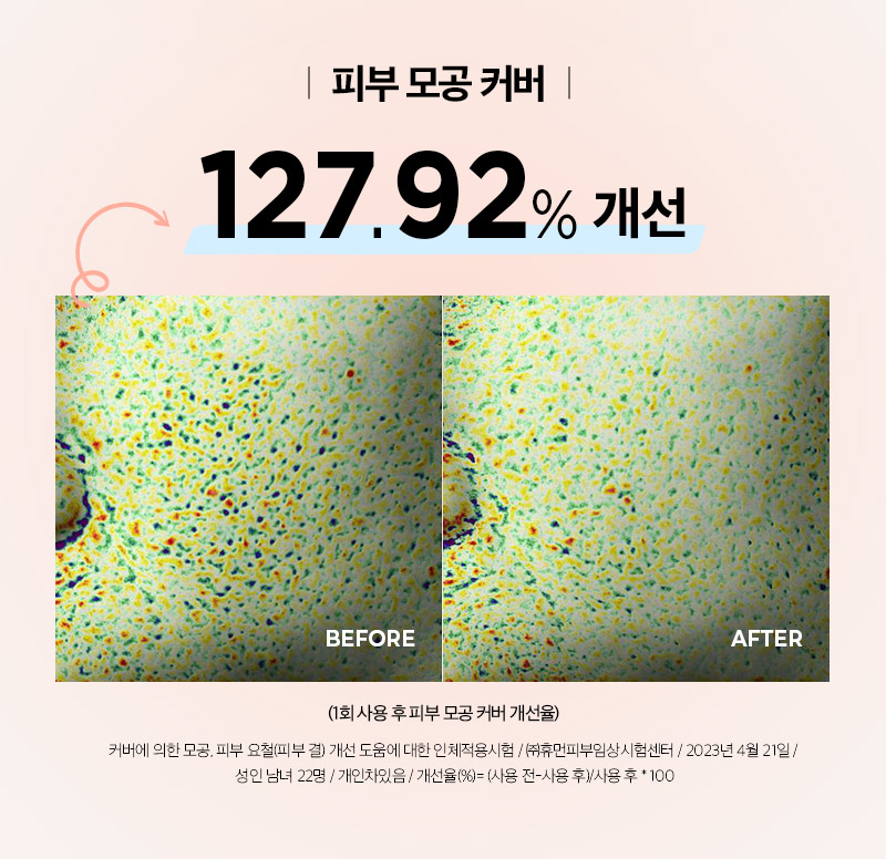 - Đã hoàn thành thử nghiệm lâm sàng và kết quả cho thấy kết cấu da được cải thiện 120,69% và lỗ chân lông trên da được cải thiện 127,92% ngay sau một lần sử dụng.