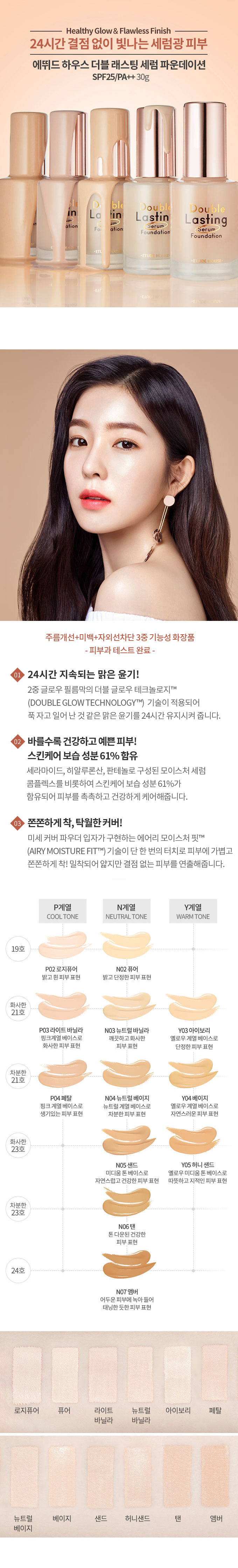 Kem Nền Che Phủ Khuyết Điểm Lớp Nền Lâu Trôi Rạng Rỡ Etude House Double Lasting Serum Foundation 30g là kem nền có tính năng cho độ rạng rỡ kéo dài 24 giờ, giúp lớp trang điểm bền lâu mà không bị bong ra.