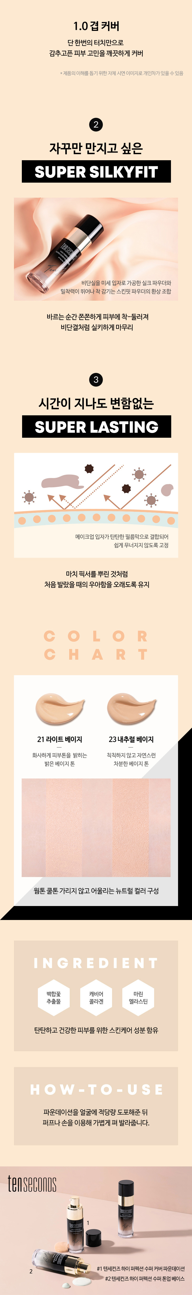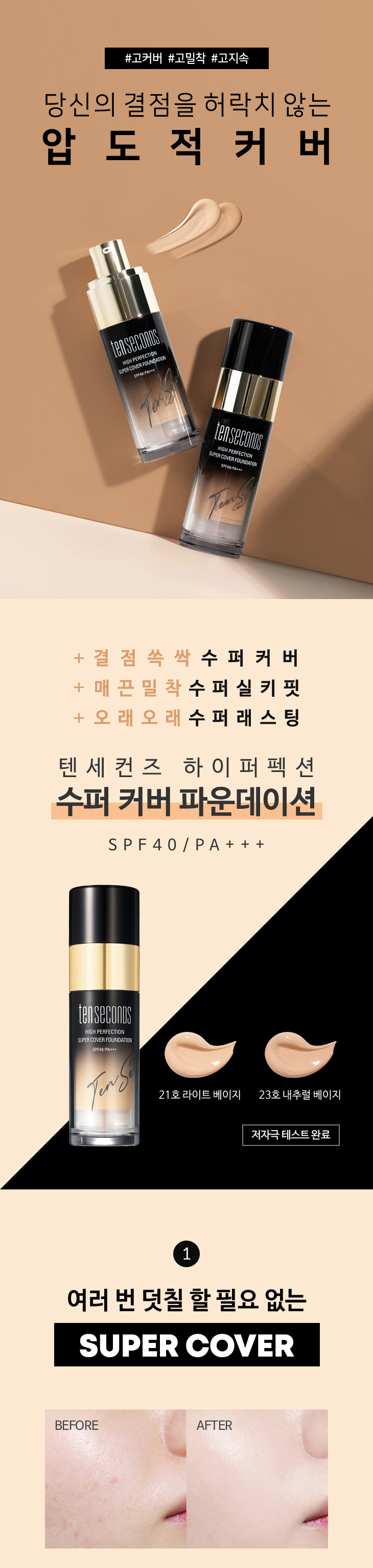 - Coreana Tenseconds High Perfection Super Cover Foundation giúp che phủ mọi khuyết điểm bạn muốn che giấu chỉ bằng một lần chạm, không cần thoa nhiều lớp.