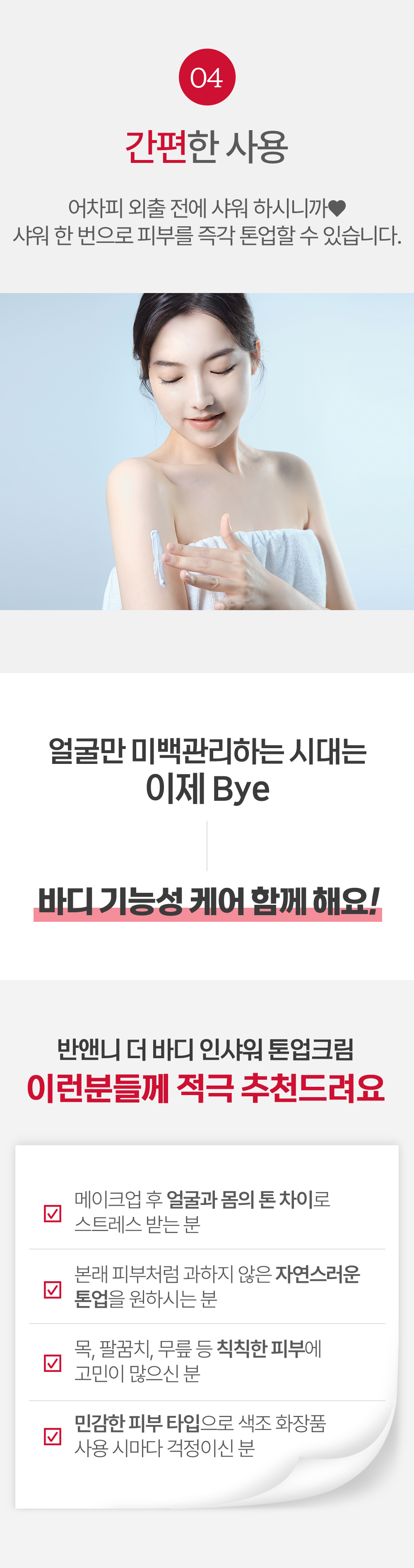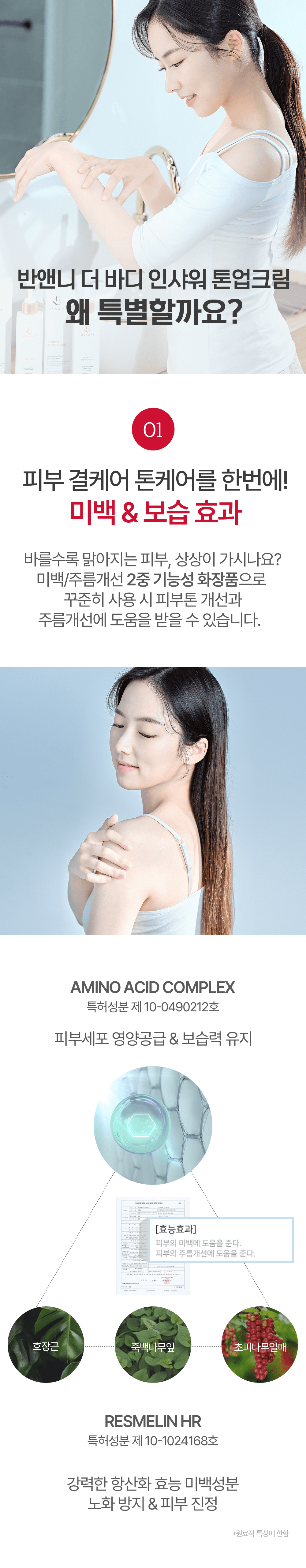 Mỹ phẩm chức năng kép làm trắng và cải thiện nếp nhăn dễ dàng dùng khi tắm, mang lại tông màu tức thì khi sử dụng sau khi tắm.