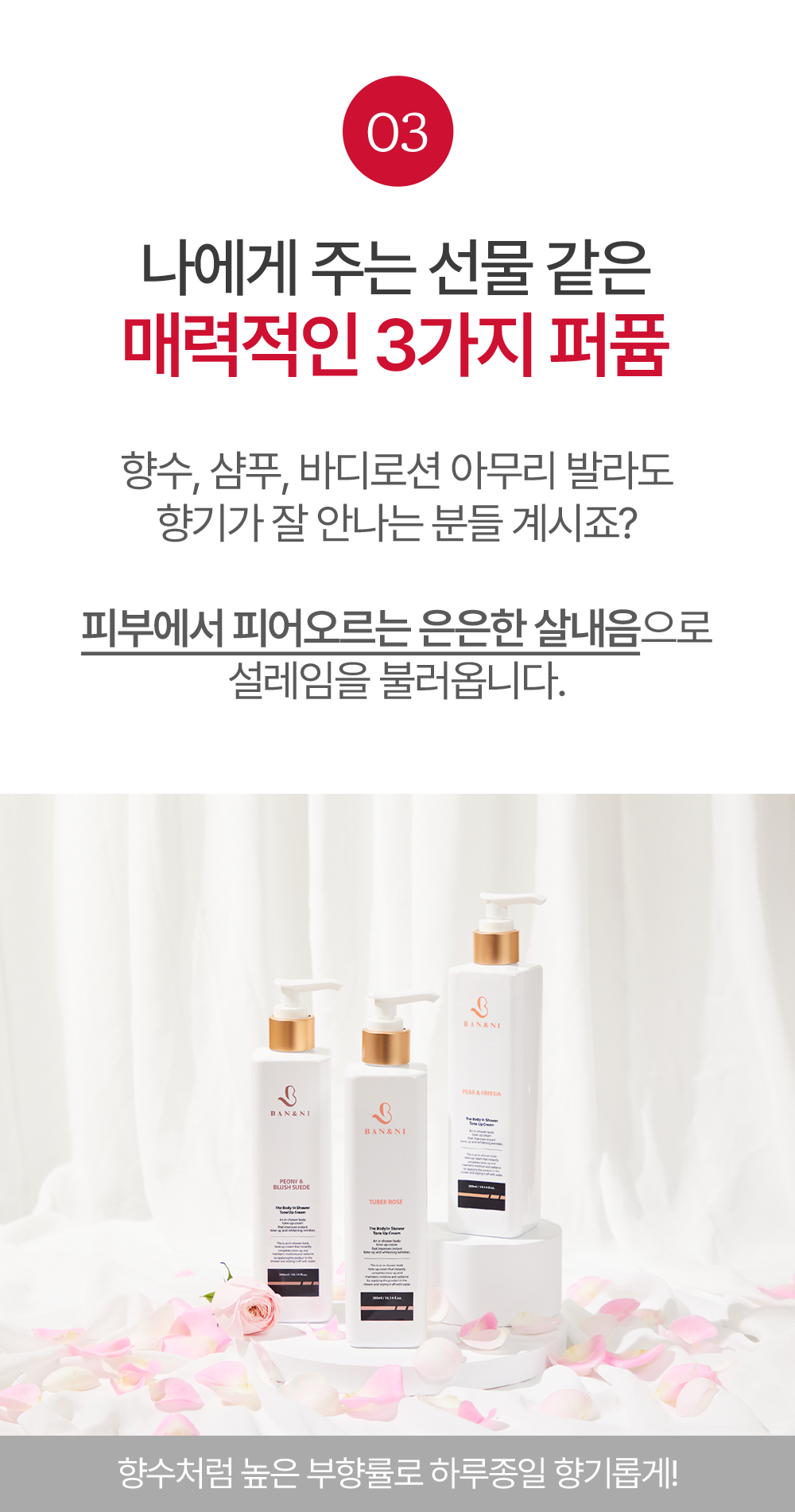 * Đặc biệt, có ba loại hương nước hoa nên bạn có thể cảm nhận được mùi hương dễ chịu cũng như làm săn chắc cơ thể, bổ sung độ ẩm: