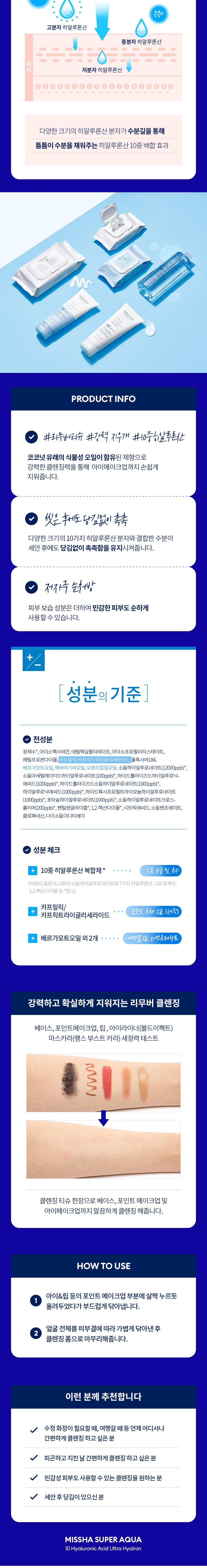 Thành phần thân thiện với da nhẹ nhàng trên da. Công thức với 10 loại axit hyaluronic trọng lượng phân tử khác nhau , nó làm cho da ngậm nước sau khi rửa mặt.