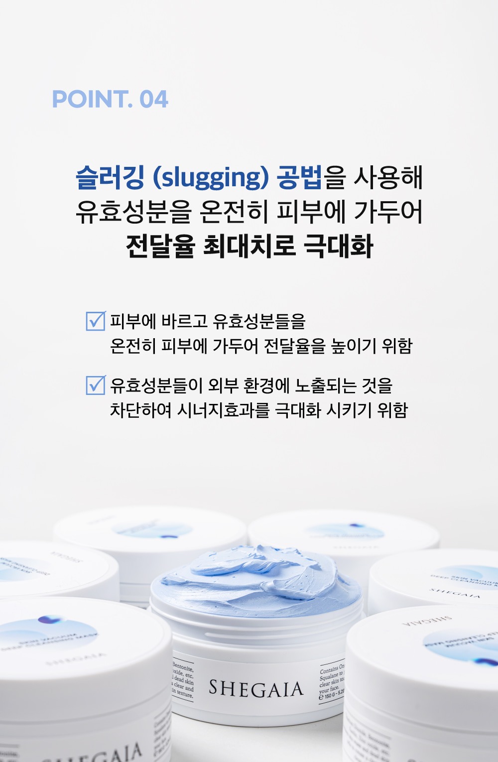 Mặt nạ làm sạch sâu được phát triển theo công thức làm đẹp đặc biệt và công nghệ của Shegaia, chứa 136 thành phần cao cấp dựa trên bằng chứng khoa học.