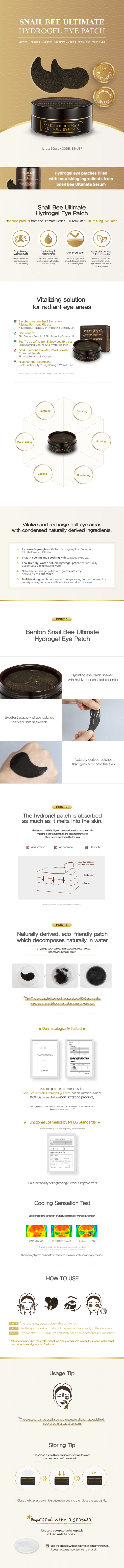 Mặt Nạ Làm Sáng Chống Nhăn Dịu Da Vùng Mắt Benton Snail Bee Ultimate Hydrogel Eye Patch ( 60 Miếng ) là mặt nạ gel cho vùng mắt có nguồn gốc từ rong biển và tinh chất làm từ lá cây trà. Bảo vệ và làm dịu làn da, giúp làm đều màu da xỉn màu, cải thiện nếp nhăn.