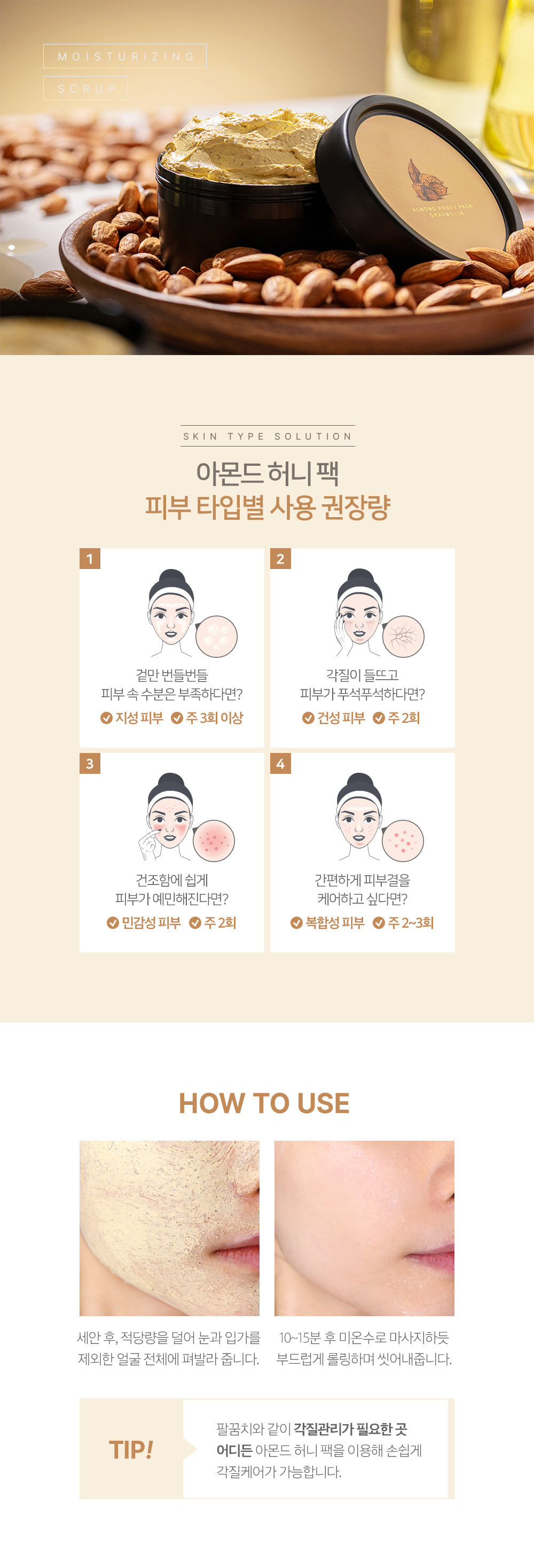 Mặt Nạ Nuôi Dưỡng Và Tẩy Tế Bào Chết Hạnh Nhân Mật Ong Graymelin Almond Honey Pack 100g là mặt nạ chứa bột hạnh nhân, mật ong và dẫn xuất protein trong sữa giúp bổ sung độ ẩm nuôi dưỡng da cùng với các hạt liti giúp nhẹ nhàng lấy đi các tế bào chết, duy trì độ ẩm của da, mang lại làn da mịn màng và sáng khỏe.