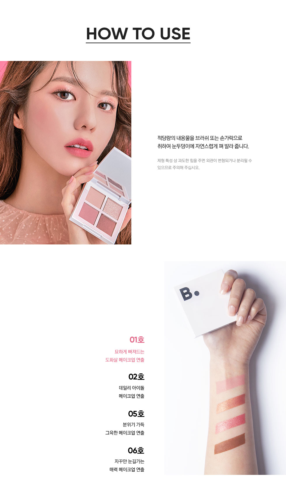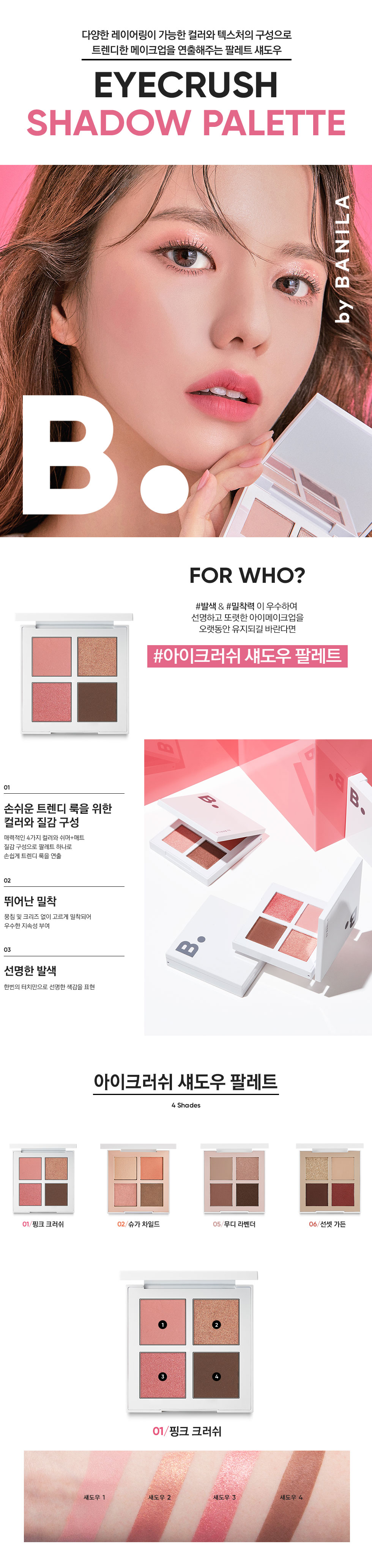 Màu Mắt Trang Điểm B. By Banila Eyecrush Shadow Palette là bảng phấn mắt với thiết kế dạng bảng chữ nhật gọn gàng dễ dàng mang theo cùng tone màu ấn tượng nhưng vẫn rất dễ sử dụng và phối hợp với nhau cho bạn nhiều sự lựa chọn. Với công thức độc đáo cùng các hạt phấn siêu mịn, có độ bám cao, phấn mắt Clio có thể dùng làm phấn lót, phấn tạo khối hoặc kẻ viền mắt tùy theo nhu cầu sử dụng. Bảng màu bao gồm 4 màu.