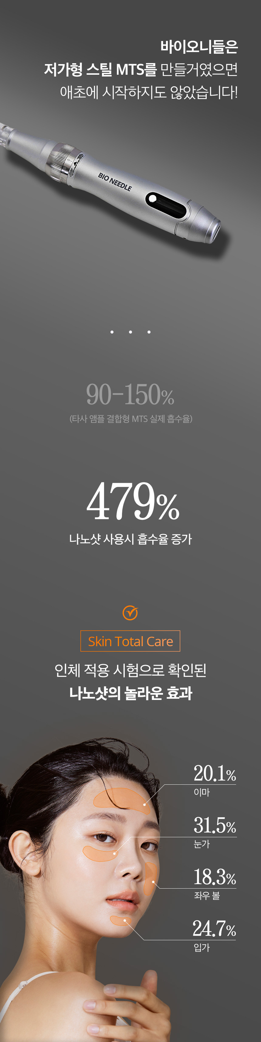 Bio Needle Nanoshot Auto MTS giúp loại bỏ tất cả những bất tiện và tính năng mà người tiêu dùng mong muốn! Bằng cách tập trung vào bản chất của sản phẩm có tên microneedle và sửa đổi khuôn hơn 20 lần trong 3 năm, Bio Needle đã có thể tạo ra một