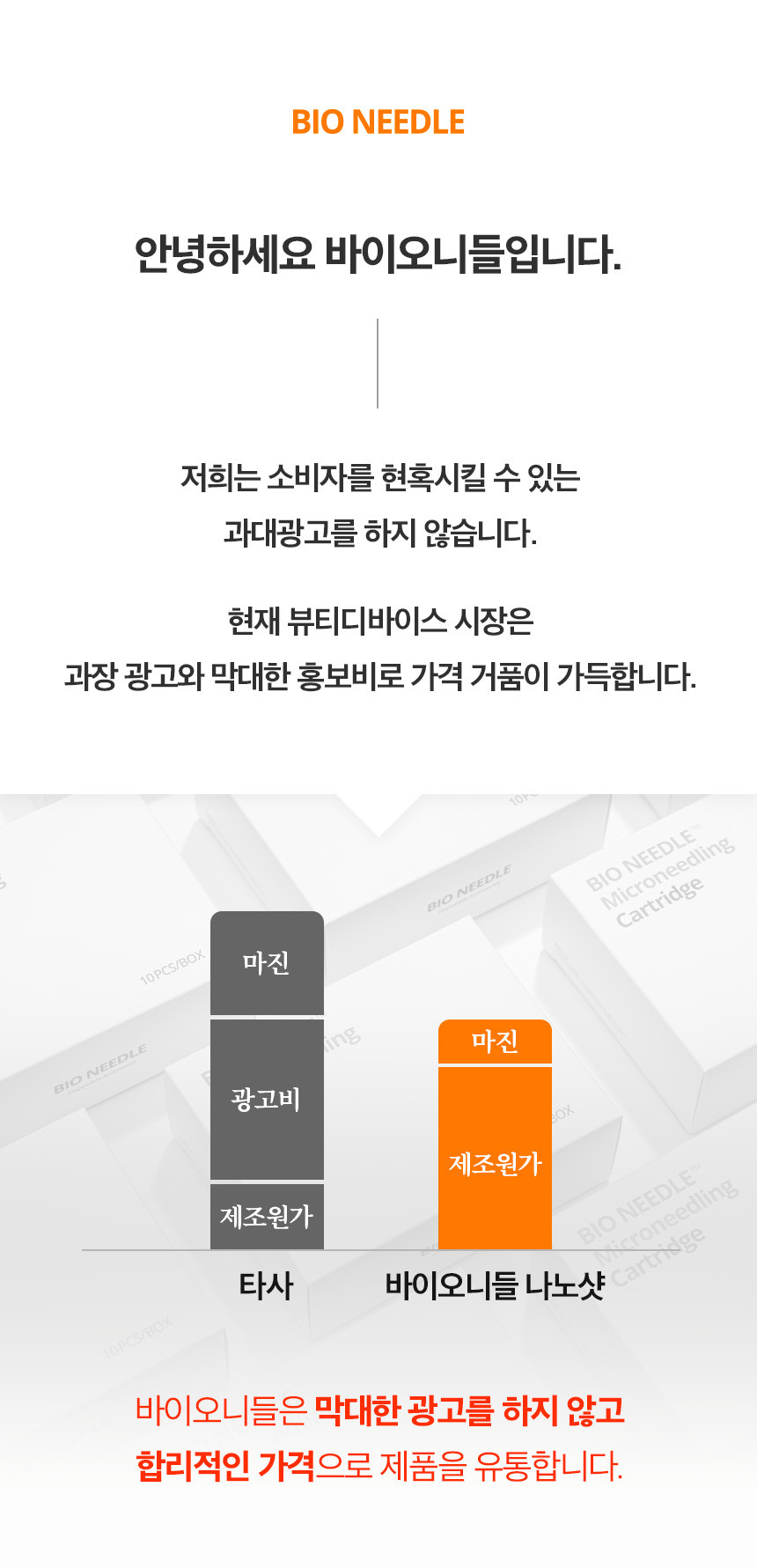 ■ Công nghệ tương tự ENDYMED, một thiết bị y tế được sử dụng tại hơn 200 phòng khám trong và ngoài nước ENDYMED, được nhiều người đã trải nghiệm tại các phòng khám chuyên nghiệp, sử dụng kim nano đã được cấp bằng sáng chế để giảm đau hơn 60% so với kích thước kim hiện có. Bioneedle Nanoshot tốt hơn ENDYMED. Sử dụng một cây kim mỏng!