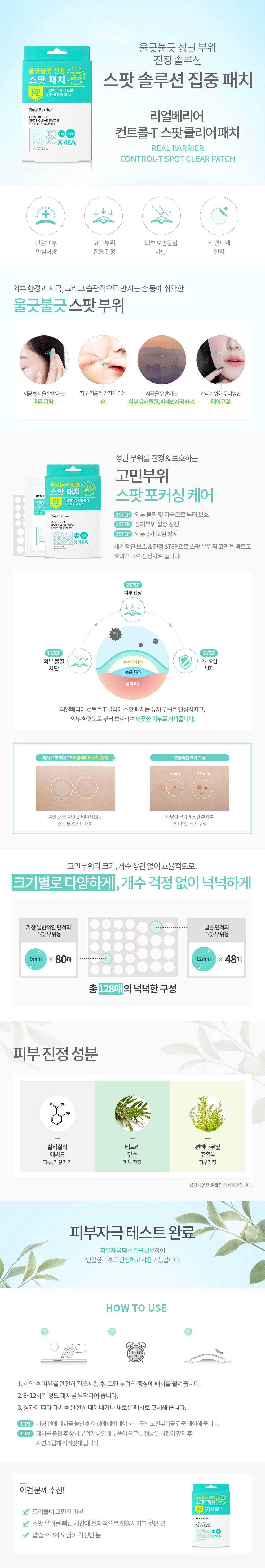 Miếng Dán Mụn Real Barrier Control-T Spot Clear Patch (4eax128 miếng) là miếng dán những nốt mụn, đồng thời làm dịu da sau khi breakout. Thành phần tràm trà vô cùng hiệu quả trong việc làm dịu hồi phục da sau khi breakout mang lại làn da nhẵn và sáng khỏe. Các miếng dán trong suốt bám chặt vào da để che phủ các khu vực lân cận.