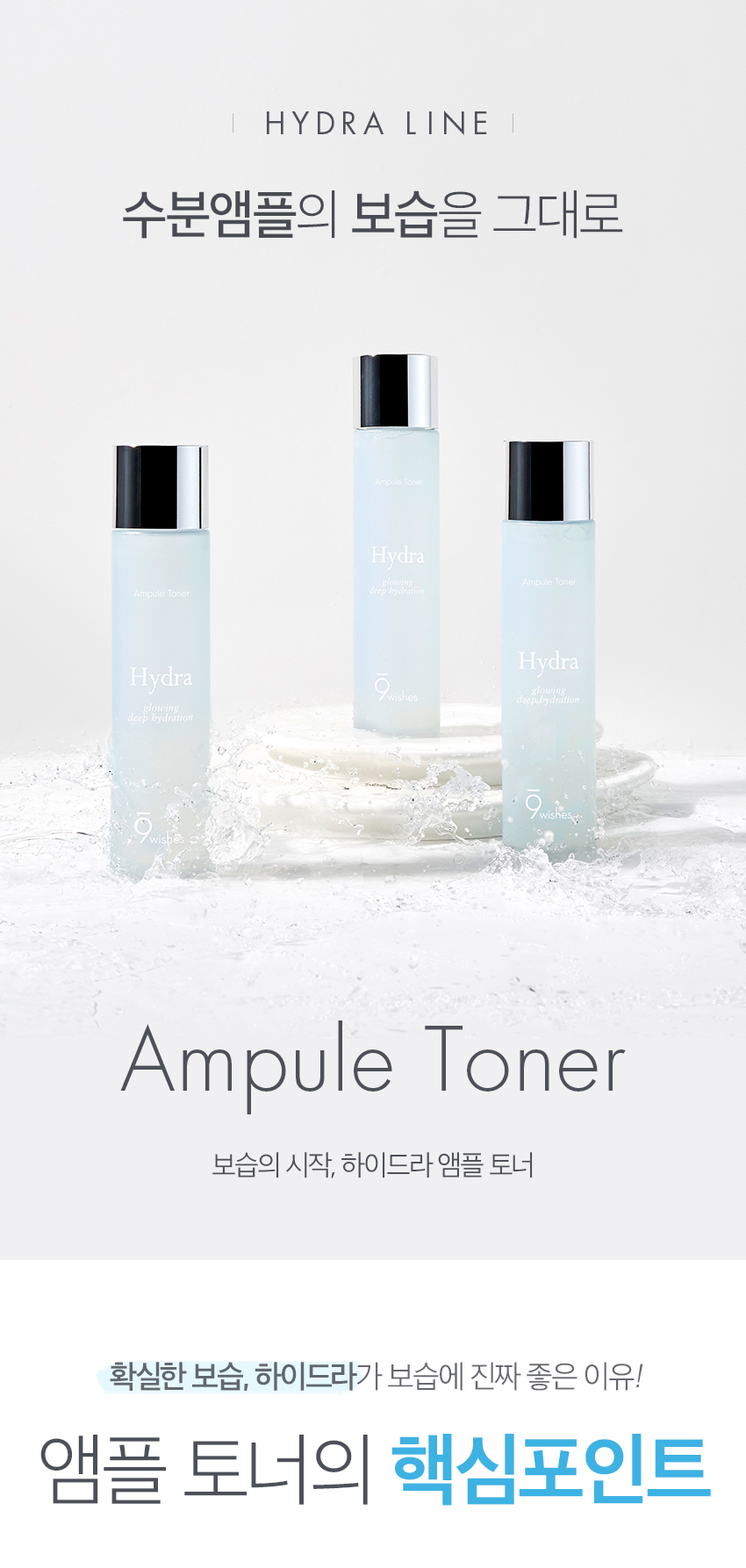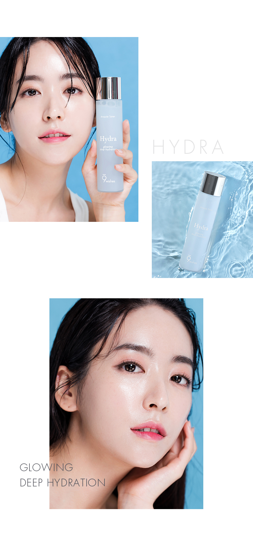 Nước cân bằng 9 Wishes Hydra Ampule Toner Glowing Deep Hydration 150ml tăng cường ẩm, duy trì được trạng thái da căng ẩm mượt, tránh bị khô, bong tróc đặc biệt trong ngày hè. Loại bỏ tế bào chết, cho làn da sáng khỏe, đồng thời thu hẹp lỗ chân lông, làn da sáng mịn màng, tránh tình trạng tắc nghẽn lỗ chân lông gây mụn. Thành phần không chứa dầu, không paraben, không tạo màu, không chất hóa học độc hại khác gây tổn thương da, sản phẩm hoàn toàn lành tính và an toàn cho da nhạy cảm.