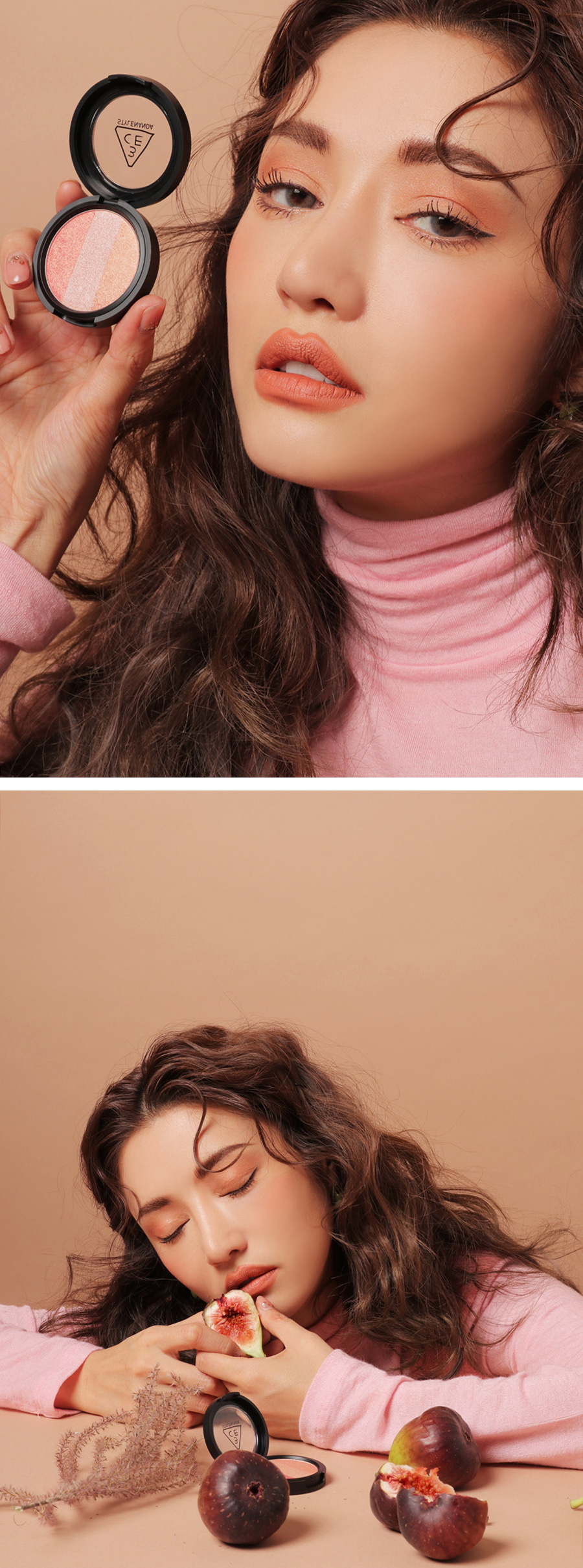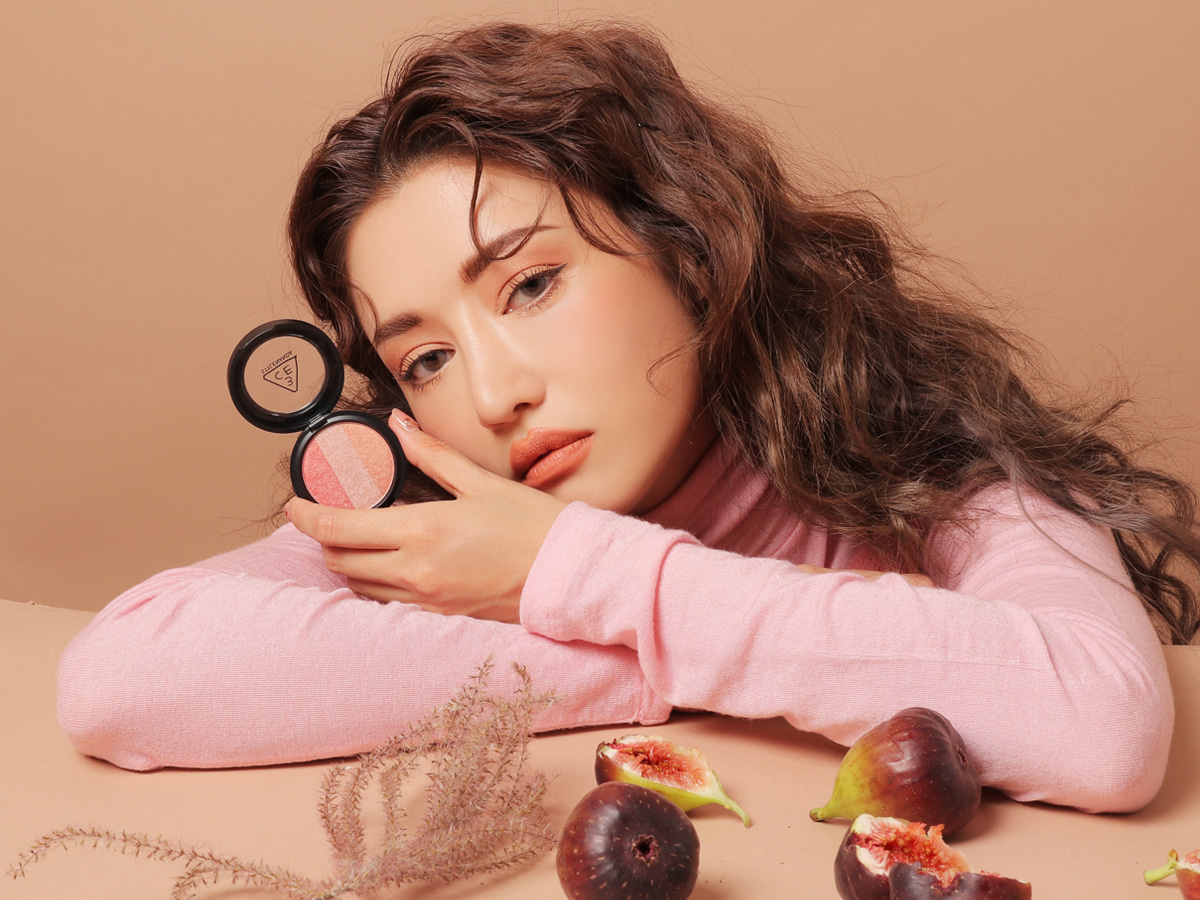 Dùng cọ lấy một lượng nhỏ bảng phấn mắt 3CE Triple Shadow #Body To Body và tán đồng đều lên bầu mắt của bạn theo phong cách bạn thích.