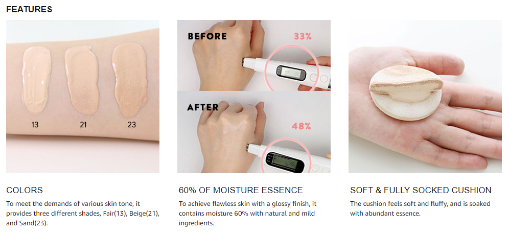 Kem nền được giữ trong Mochi-Cushion độc đáo ngăn sự bốc hơi ẩm. Mochi-Cushion đặc biệt giữ lớp nền ở giữa miếng bọt biển làm giảm quá trình oxy hóa để duy trì trạng thái ban đầu của lớp nền cho một lớp nền bóng, tự nhiên.