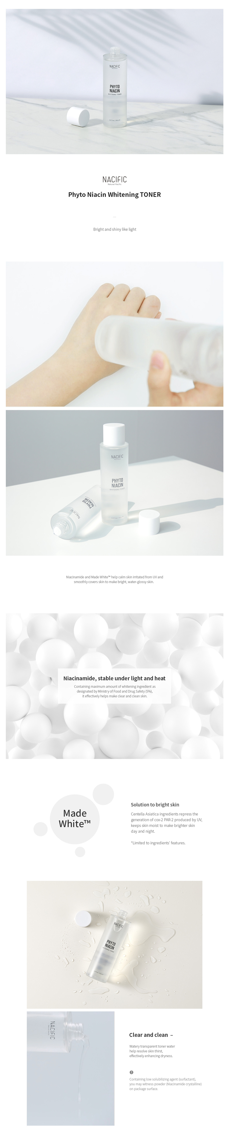 Nacific (Natural Pacific) Phyto Niacin Whitening Toner là sản phẩm nước cân bằng da chứa Niacinamide - 1 dẫn xuất của vitamin B3, nghĩa là có chiết xuất từ tự nhiên, an toàn và lành tính. Do đó, bản thân Niacinamide từ lâu cũng đã được công nhận và đánh giá cao là 1 thành phần dưỡng da mang nhiều lợi ích vượt trội, khi sử dụng có khả năng gây kích ứng da cực thấp so với các thành phần khác.