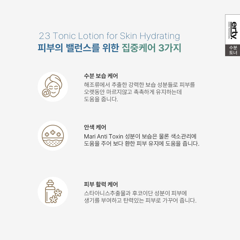 Sữa dưỡng Erty 23 Tonic là sự lựa chọn hoàn hảo cho những ai đang tìm kiếm một loại sữa dưỡng ẩm nhẹ nhưng sâu, không chỉ cấp ẩm mà còn bảo vệ và phục hồi làn da.