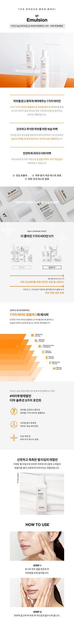 Sữa Dưỡng Ẩm Làm Da Sáng Khỏe Dr.Jart+ V7 Emulsion 120g là sữa dưỡng ẩm chứa 7 loại vitamin từ V7 làm sáng làn da của bạn. Làm sáng, làm dịu, khóa ẩm, làm sạch, làm săn chắc, giữ ẩm, căng bóng khỏe.