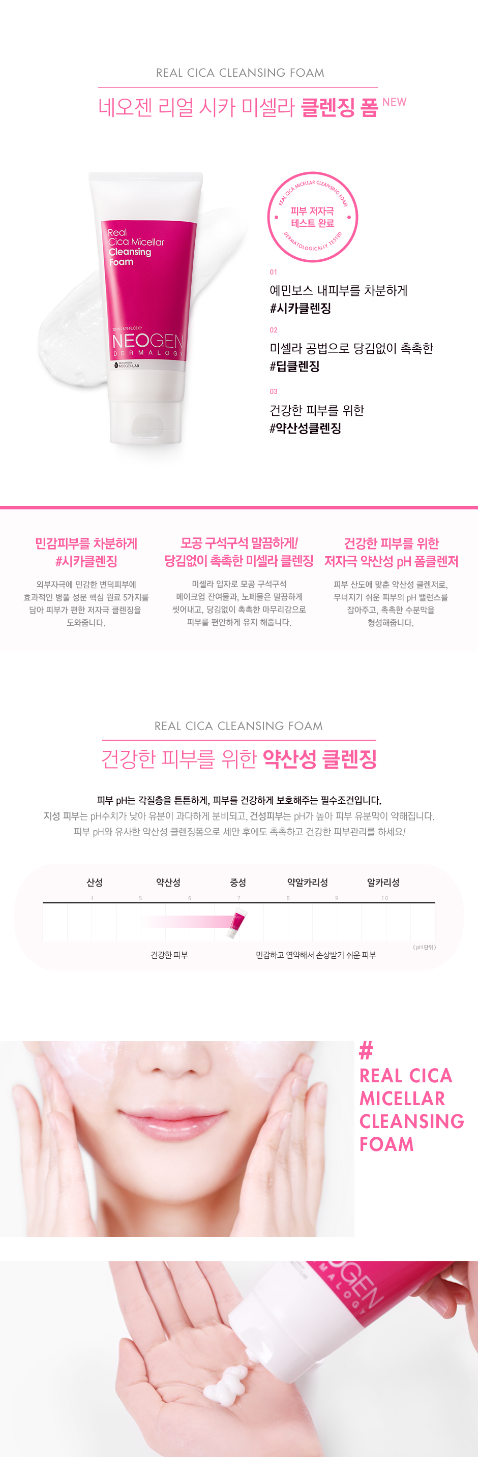 Sữa Rửa Mặt Tạo Bọt Công Nghệ Micellar Neogen Real Cica Micellar Cleasing Foam 200ml là sữa rủa mặt tạo bọt mịn cân bằng độ pH không gây dị ứng, giúp làm sạch sâu các cặn trang điểm và các tạp chất trong khi giữ ẩm cho da.