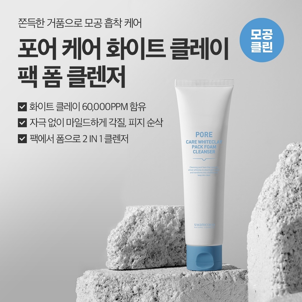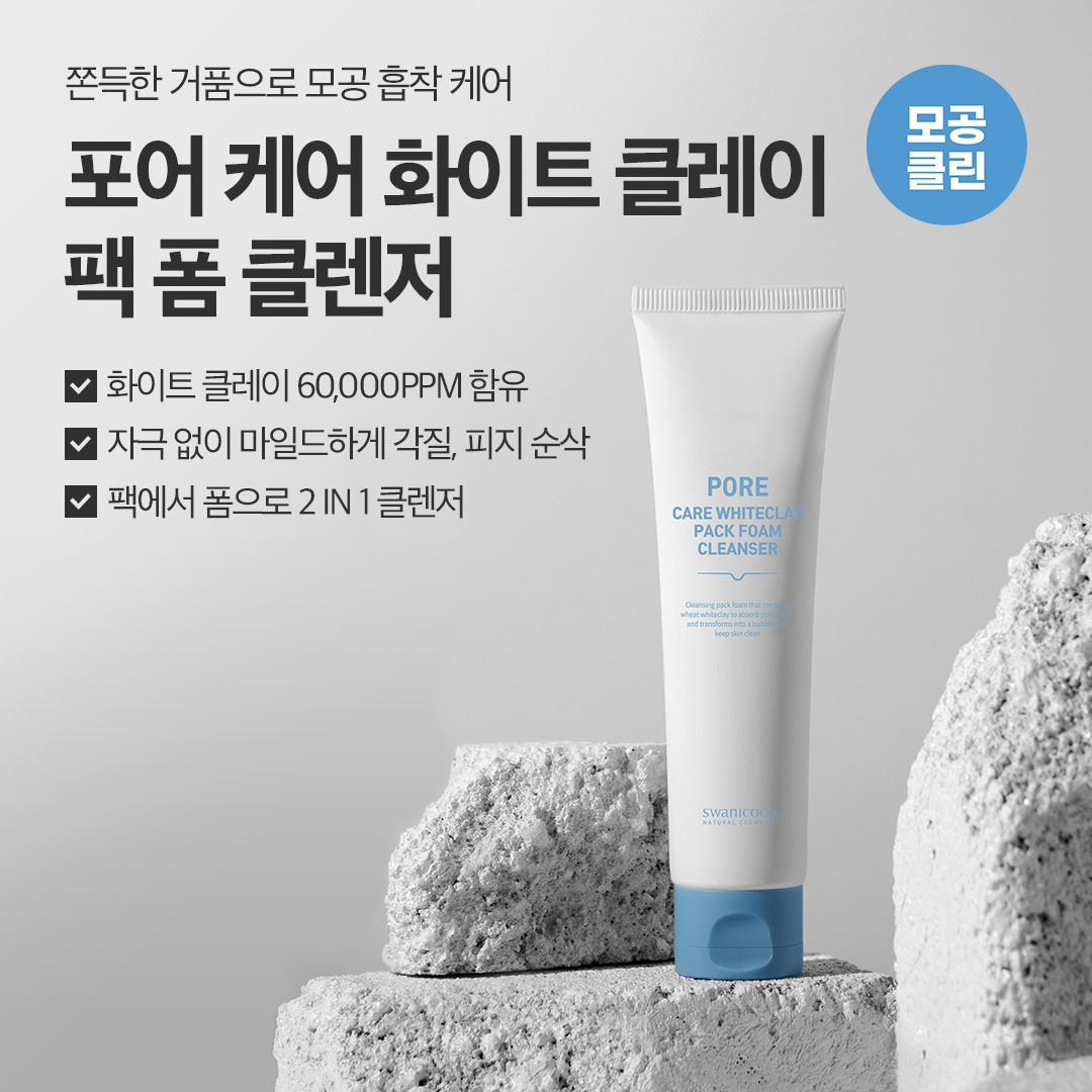 Sữa rửa mặt Swanicoco Pore Care Whiteclay Pack Foam Cleanser là sữa rửa mặt dạng tạo bọt có thành phần Kaolin (đất sét trắng) giúp loại bỏ hoàn toàn tạp chất trên da, lỗ chân lông và se khít lỗ chân lông.