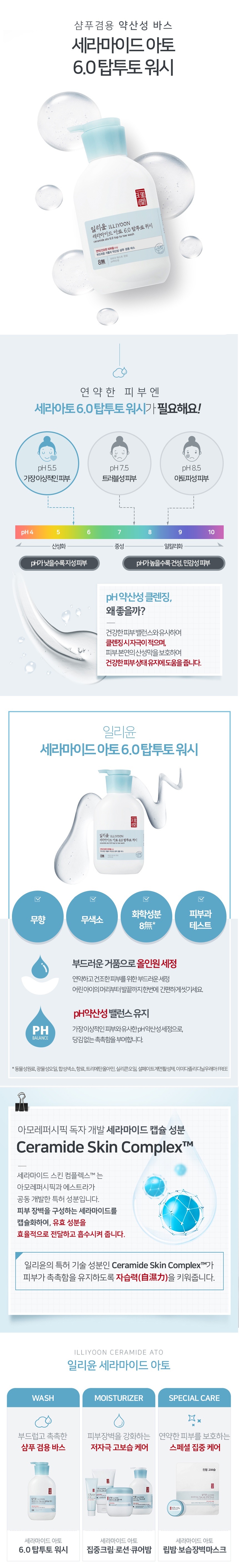 Sữa tắm dịu nhẹ illiyoon Ceramide ATO 6.0 Top to Toe Wash chứa ceramide cùng chiết xuất thực vật lá sen, đậu nành lên men và tía tô giàu vitamin C, E, B,A cùng các khoáng chất thiết yếu giúp nhẹ nhàng làm sạch, khử mùi hôi cơ thể đồng thời vẫn mang lại cảm giác ẩm cho da sau khi tắm.