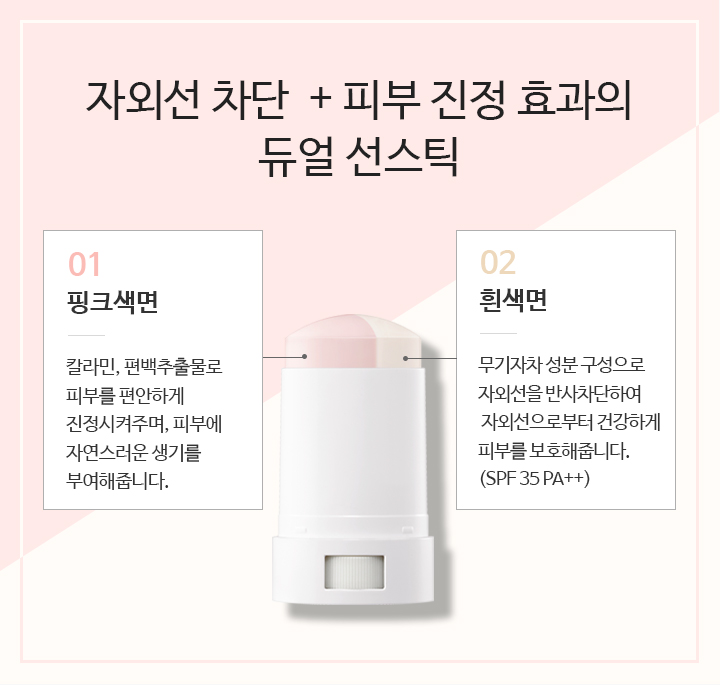 Mặt trắng: Nó bảo vệ da bằng cách phản xạ và che chắn tia UV do các chất vô cơ của nó. Mặt màu hồng: Calamine, chiết xuất từ cây bách, làm dịu da một các thohải mái và tạo ra một sức sống tự nhiên.