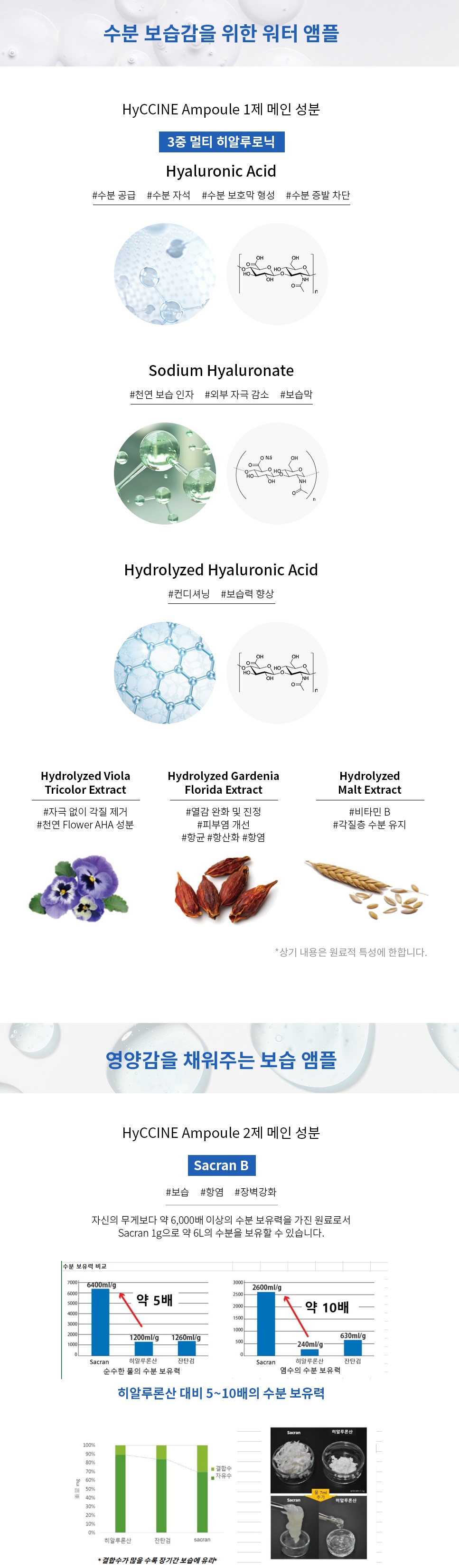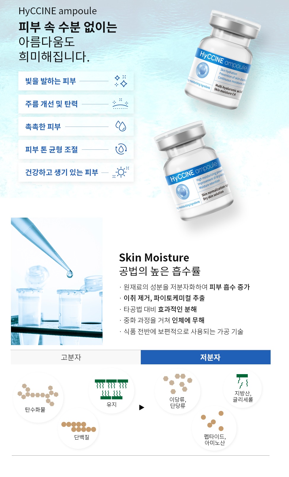 - Dưỡng ẩm sâu: HyCCINE Ampoule 1 có công thức gốc nước với ba thành phần đa hyaluronic giúp hydrat hóa và dưỡng ẩm, hấp thụ nhanh chóng vào da mà không bị dính.