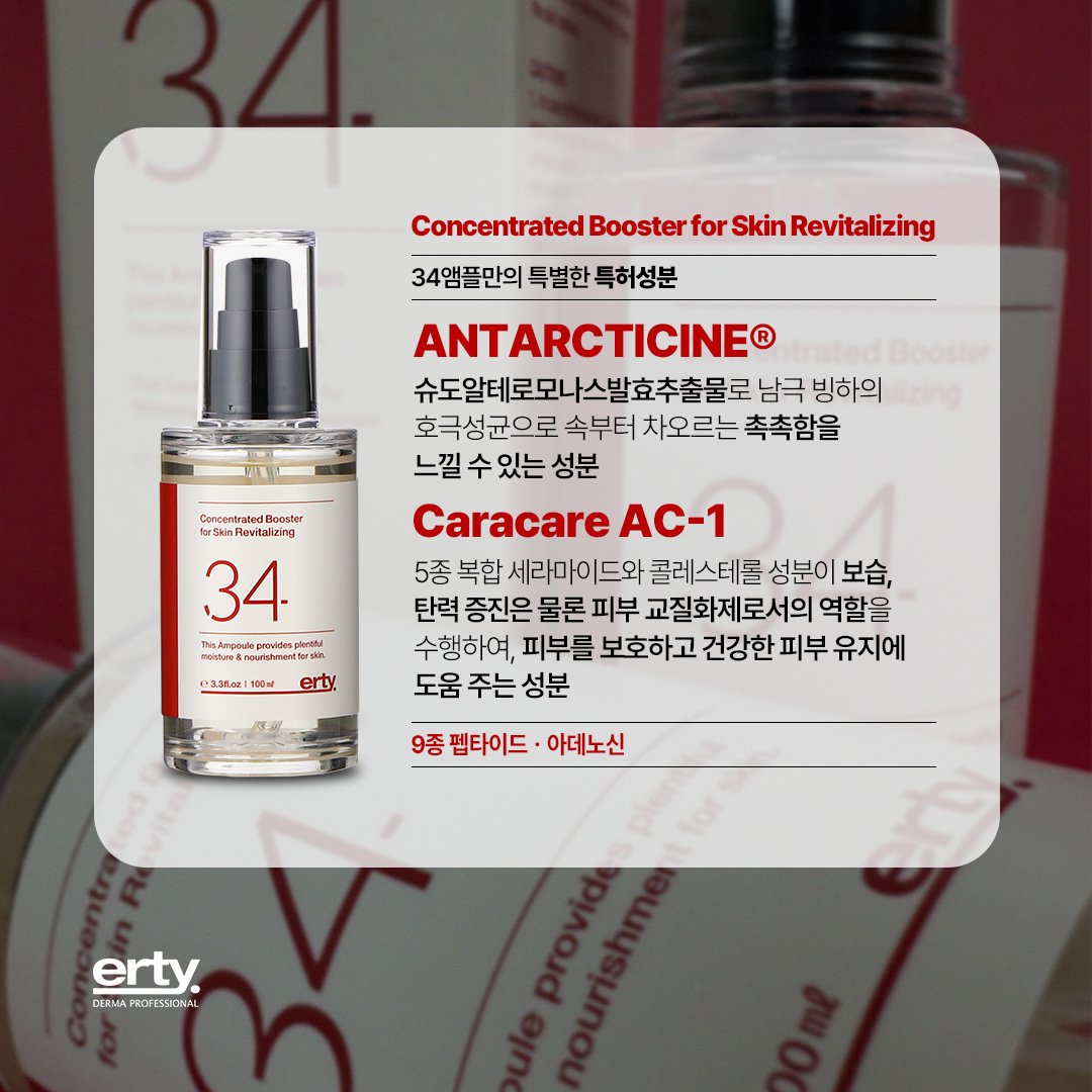 Erty 34 Ampoule là giải pháp lý tưởng cho những ai muốn bảo vệ làn da khỏi tác động của môi trường, tăng cường độ đàn hồi và mang lại làn da tươi trẻ, săn chắc nhờ sự kết hợp giữa dưỡng ẩm, peptide và phục hồi ceramide.
