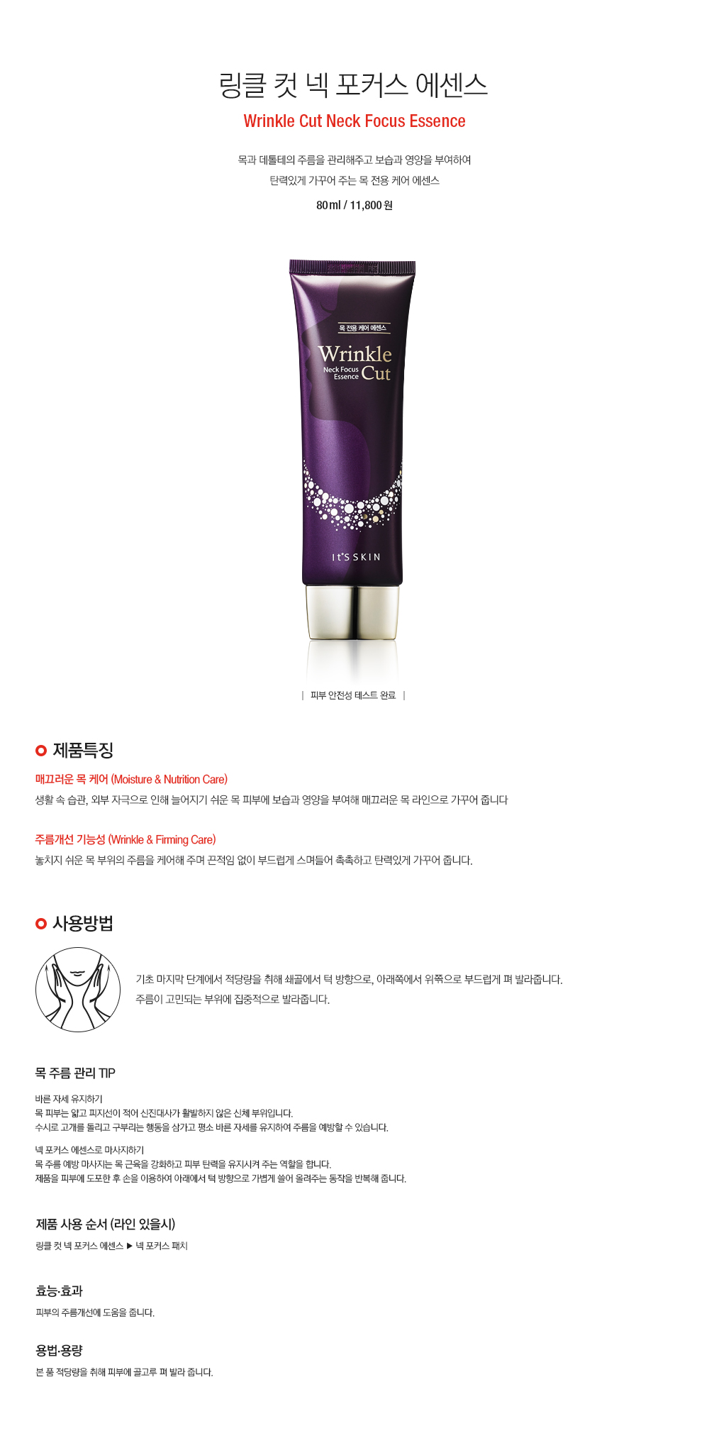 Tinh Chất Chống Nhăn Chăm Sóc Vùng Da Cổ It's Skin Wrinkle Cut Neck Focus Essence 80ml là tinh chất cung cấp độ ẩm và dinh dưỡng cho da và chăm sóc tốt các nếp nhăn trên cổ. Duy trì độ đàn hồi và khỏe mạnh mà không có nếp nhăn