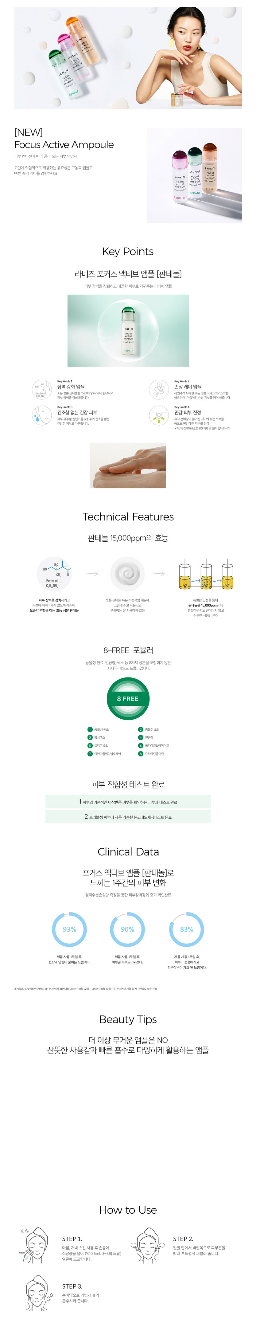 - Sáng và tối sau khi sử dụng nước cân bằng da (toner) để cân bằng độ ẩm và làm sạch da, lấy một lượng sản phẩm Focus Active Ampoule (0,5ml, 3 ~ 5 giọt) lên mặt.