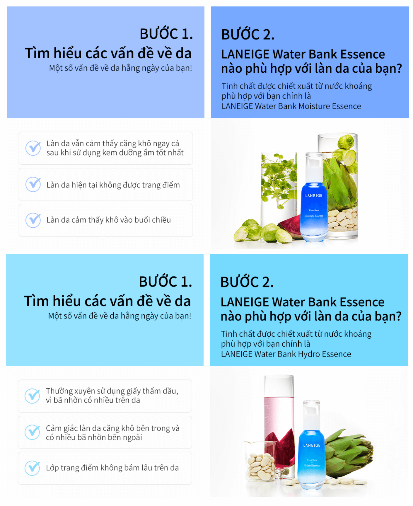 Đặc biệt thành phần cải xoong vườn giúp làn da săn chắc, tăng cường độ đàn hồi, mang lại sự tươi trẻ cho da. Water bank hydro essence sparkling my way được áp dụng công nghệ cải tiến trong chức năng khóa ẩm, cho làn da đủ ẩm, hạn chế đổ dầu, căng tràn sức sống.