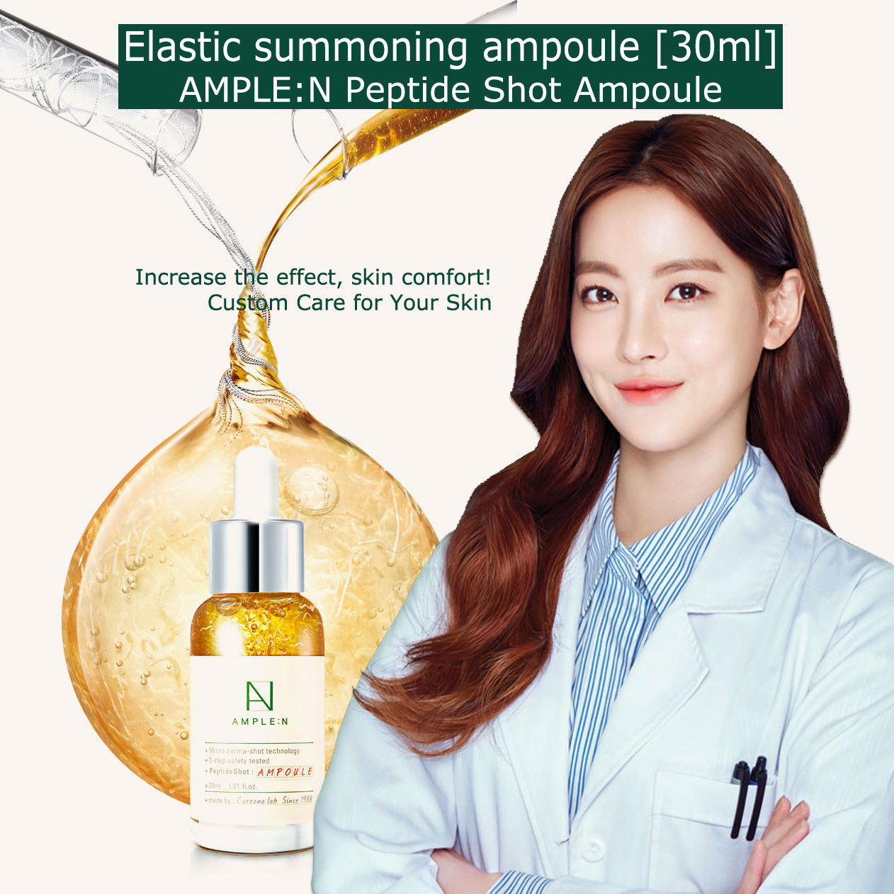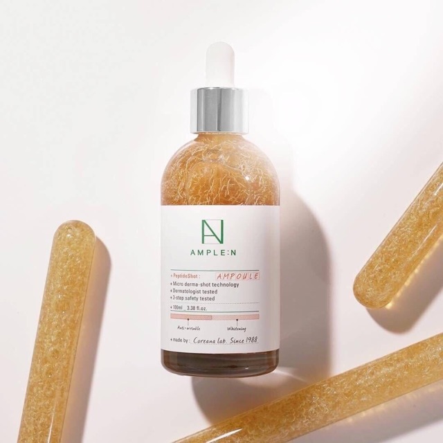 Tinh Chất Dưỡng Trắng Da Chống Lão Hóa Coreana Ample:N Peptide Shot Ampoule 30ml là tinh chất đặc trị với các thành phần gồm 3 loại peptide (Palmitoyl Oligopeptide, Palmitoyl Pentapeptide-4, Acetyl Hexa Peptide-8) giúp tăng cường độ đàn hồi cho da, cải thiện nếp nhăn, cung cấp dưỡng chất giúp trẻ hóa làn da. Đồng thời chiết xuất từ ngọc trai giúp dưỡng da trắng sáng