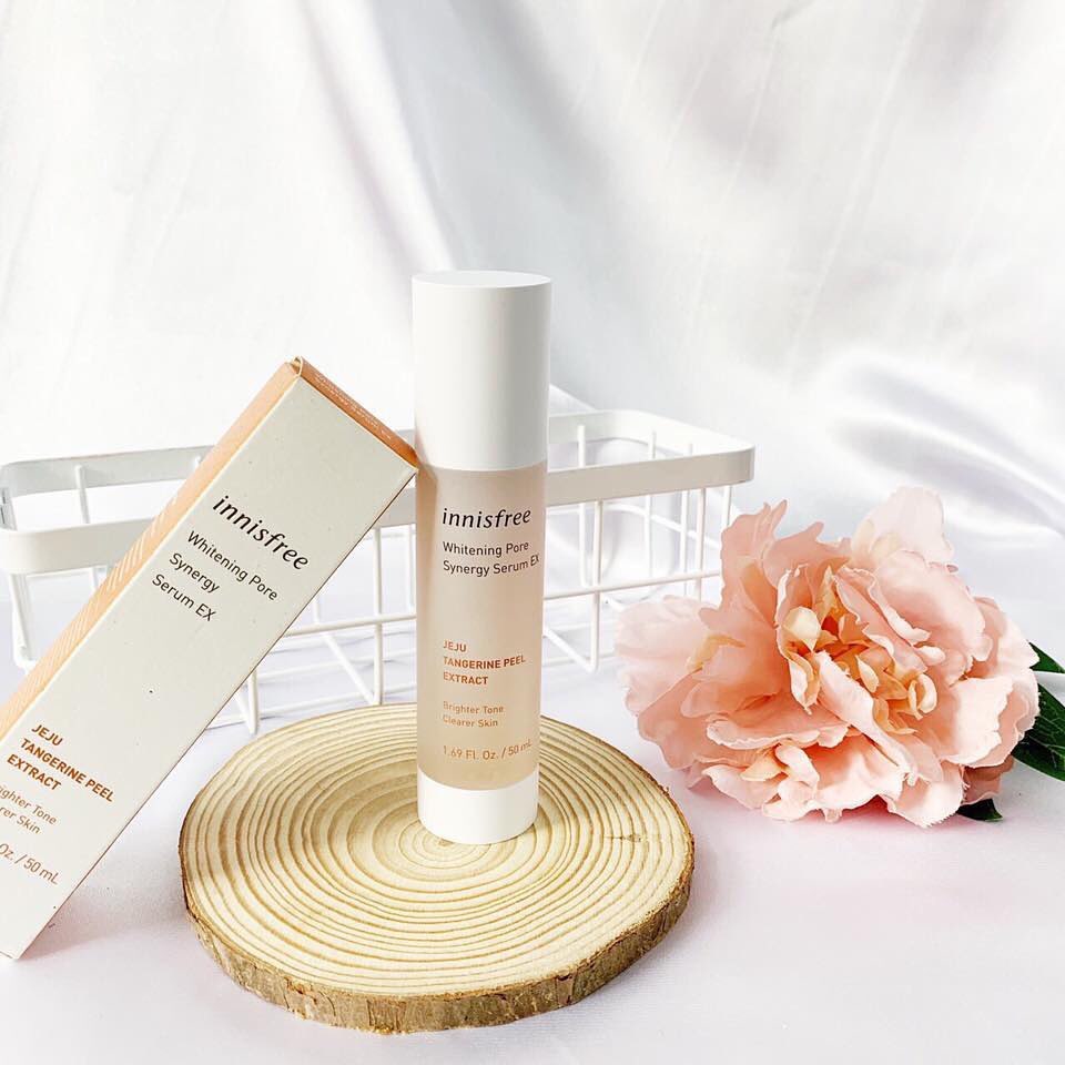 Tinh Chất Dưỡng Trắng Da Innisfree Whitening Pore Synergy Serum EX Jeju Tangerine Peel Extract 50ml là tinh chất được nâng cấp từ phiên bản Innisfree Whitening Pore Cream cũ, sở hữu thành phần dưỡng chất dồi dào hơn. Sản phẩm chứa hàm lượng vitamin C từ chiết xuất quýt cô đặc có tác dụng làm sáng tông da, chống lại các gốc tự do gây lão hóa, cải thiện những vùng da sạm, xỉn màu.