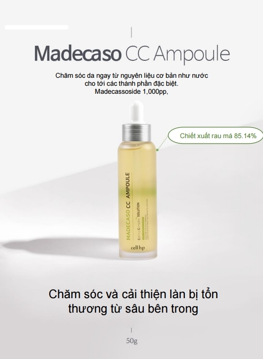 Cell H.P Madecaso CC Ampoule là tinh chất giúp tái tạo, làm dịu da, phục hồi da nhạy cảm và bị kích ứng.