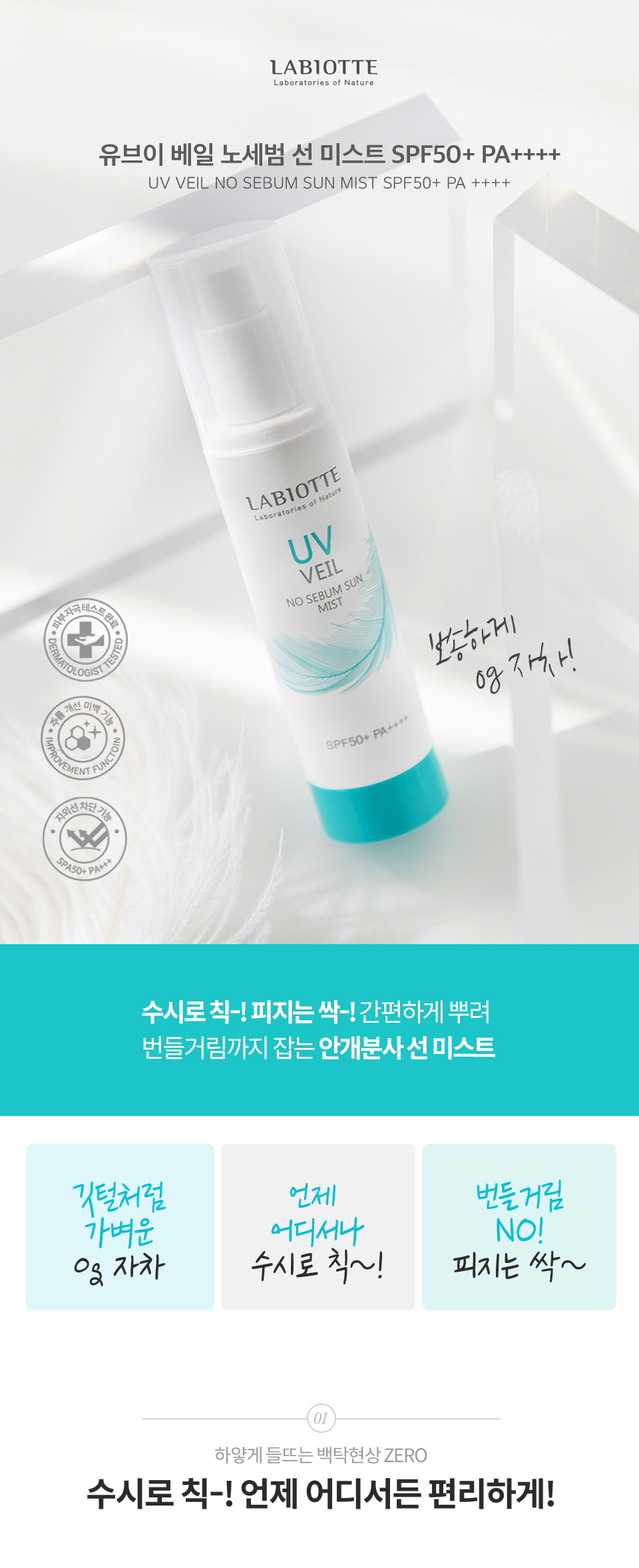 Xịt Chống Nắng Kiềm Dầu Labiotte UV Veil No Sebum Sun Mist 80ml SPF50+/PA++++ là chống nắng dạng xịt phun sương, có chức năng kiềm dầu, cải thiện nếp nhăn, làm trắng, chống tia UV.