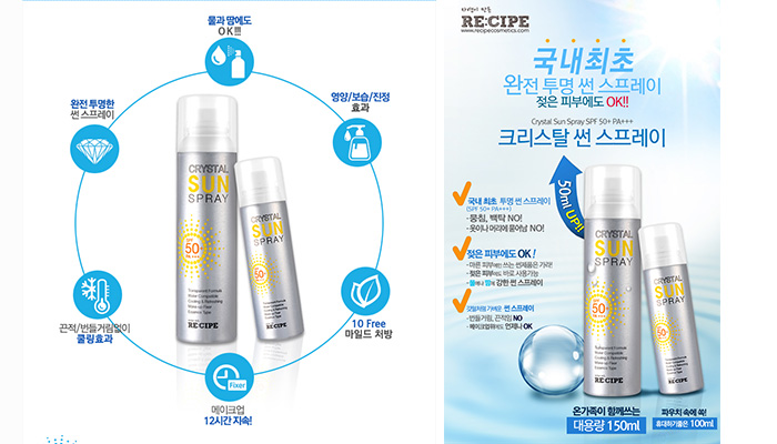 Xịt Chống Nắng Bảo Vệ Da Chống Nước Recipe Crystal Sun Spray SPF50+PA+++ giúp bảo vệ da, chất kem trong suốt, thẩm thấu nhanh, không trôi, phù hợp với cả nam và nữ