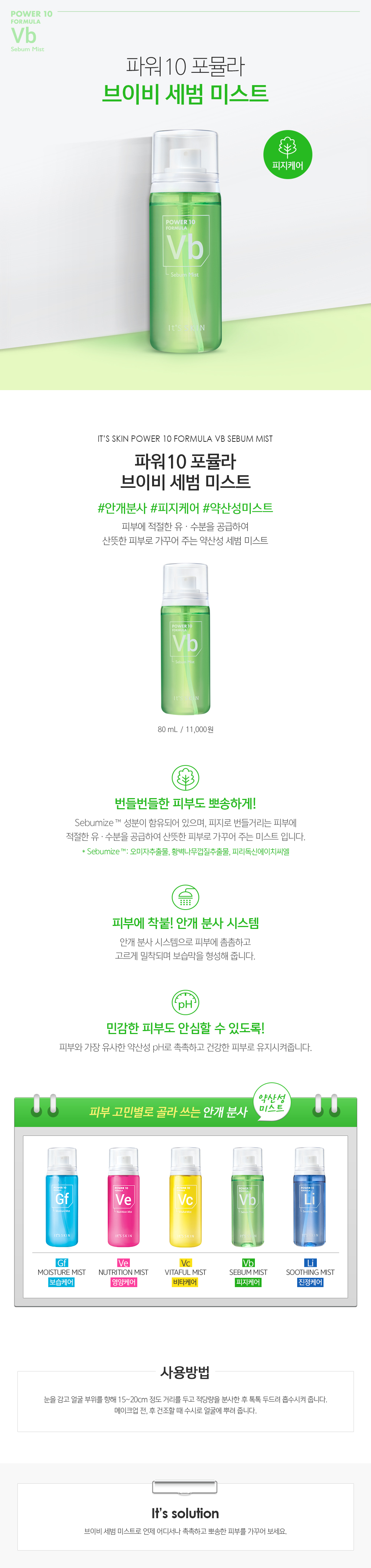 Xịt Khoáng Cân Bằng Độ Ẩm Kiềm Dầu Cho Da It's Skin Power 10 VB Sebum Mist 80ml là xịt khoáng dưỡng ẩm cung cấp cho da với dầu và độ ẩm thích hợp. Đó là một làn sương chăm sóc với làn da tươi mới. Hệ thống phun sương giữ cho da được gắn đều. Nó có thể được sử dụng một cách an toàn với độ pH axit nhạy cảm